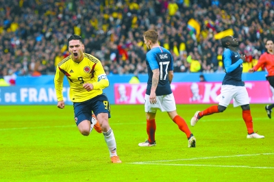 比赛中,哥伦比亚队在开场连丢两球的情况下,凭借穆里尔、法尔考以及金特罗的3个进球,在巴黎王子公园球场实现了大逆转,其中法尔考与罗德里格斯两人的配合进球让人赏心悦目。哥伦比亚球员的技术能力和战术执行力在这场比赛中都很出众,68岁的阿根廷籍主帅佩克尔曼执教经验丰富,曾在2006年世界杯上带领阿根廷队打进八强。法国主帅德尚赛后坦言:“这支哥伦比亚队在进攻方面给我们上了一课,比赛中我们频繁丢掉球权,这让对手走上了正确轨道,逆转的结果表明,他们不会让机会在手中溜走。” 视觉中国供图