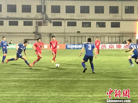2018年中国足协杯25日晚在上海举行开幕式,并随后进行足协杯第二轮的比拼。业余球队上海嘉定城发主场1:3憾负宁夏山屿海。 马元豪 摄