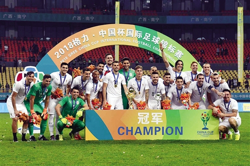 2018格力·中国杯国际足球锦标赛昨晚在广西体育中心决出了冠军队伍。凭借巴黎圣日耳曼球星卡瓦尼的进球,乌拉圭队1比0小胜威尔士代表队,夺得了第二届“中国杯”的冠军。