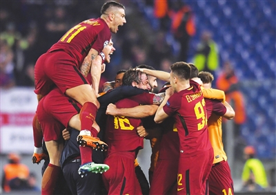 本报讯(记者 方奕昕)北京时间昨天凌晨,欧冠1/4决赛次回合上演了一场可以写入史册的惊天逆转,手握4:1巨大优势的巴萨在客场被罗马3:0击溃,“红狼军团”从而以客场进球多的优势晋级半决赛,这也是他们自1984年以来首次杀入欧冠四强。