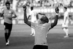 阿约维庆祝进球。 新华社发