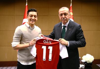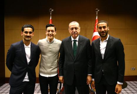 德国足球运动员厄齐尔与土耳其总统埃尔多安的合影。