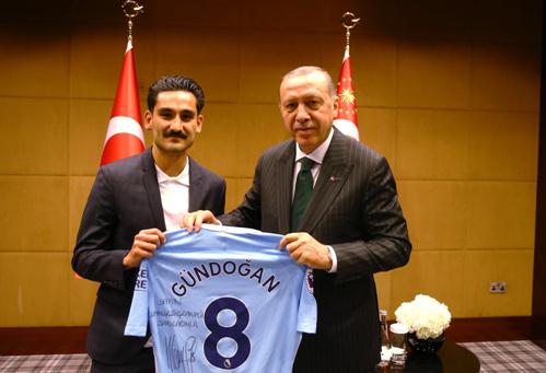 德国足球运动员京多安与土耳其总统埃尔多安的合影。