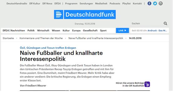 《苏格拉底》杂志认为,厄齐尔或许没有意识到,此事会招致批评。“但如果他知道,他也不在乎,毕竟他都做过好几次这种事了。”