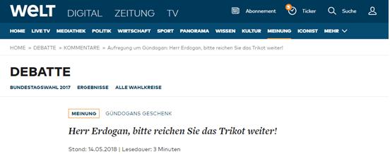 他向京多安喊话称,德国国家足球队运动员的总统是弗兰克·瓦尔特·施泰因迈尔,总理是安吉拉·默克尔,议院叫做德国联邦议院。它坐落在柏林,并非在安卡拉。