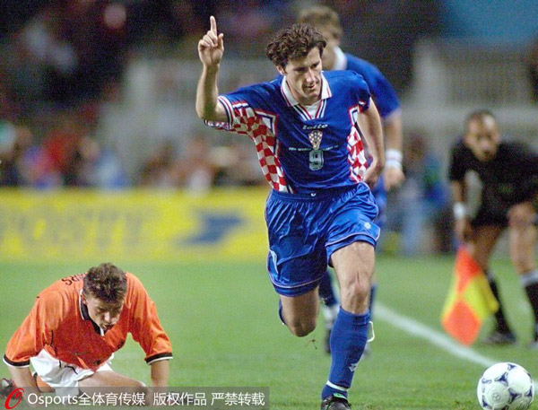 法国世界杯,7场比赛攻下6城的达沃-苏克是格子军团的头号功臣。对阵牙买加他的第三粒球进帐决定胜败,1/4决赛3-0完胜德国更是苏克领衔的克罗地亚黄金一代上演的上乘之作。半决赛面对东道主,2-1遭逆转虽败犹荣。穿金靴,捧银球,获铜牌,那届世界杯是苏克足球生涯的高光时刻。