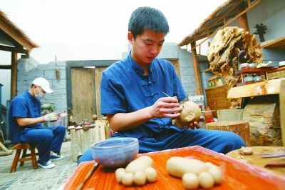 蹴鞠娃制作中。本报记者 闫汇芳摄/光明图片