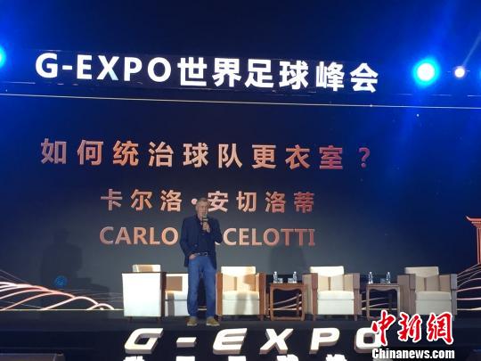 安切洛蒂讲述“如何协调统领球队更衣室”。 吴兰 摄