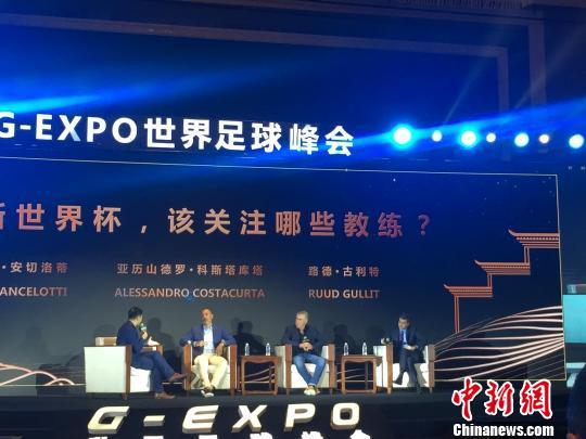 中新网安徽蚌埠6月7日电 (记者 吴兰)7日,G-EXPO世界足球峰会——世界顶级教练论剑安徽蚌埠。安切洛蒂、科斯塔库塔、古利特三位知名教练就“如何协调统领球队更衣室”和俄罗斯世界杯上关注哪些主教练展开对话。