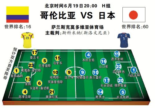 2014年巴西世界杯,哥伦比亚队在小组赛中以4比1击败日本队,哈梅斯·罗德里格斯(J罗)横空出世。那届世界杯中,哥伦比亚队最终晋级8强,日本队则小组垫底,无缘16强。4年后,两队再次在小组赛遭遇,可谓“冤家路窄”。