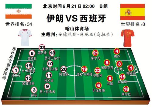 首轮,西葡两队握手言和,想要出线,次轮就要力争获胜。而首轮获胜的伊朗队此战面对“斗牛士”不会怯懦,不会让对方踢得轻松,他们的目标是力保小组头名,力争出线。