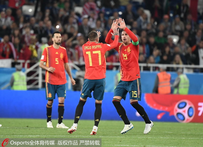 第92分钟,西班牙队采取战术角球,皮球传到小禁区前沿的阿斯帕斯,阿斯帕斯将球推射入网。经过视频助理裁判确认,阿斯帕斯破门有效。西班牙2-2摩洛哥。
