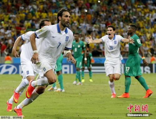 希腊2-1战胜科特迪瓦与哥伦比亚携手晋级16强,科特迪瓦小组第3被淘汰。