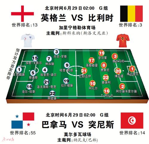 G组的出线形势非常明朗,两连胜的英格兰队和比利时队已经携手出线,他们将上演“英超内战”竞逐小组头名,而已经双双提前出局的巴拿马队和突尼斯队则在末轮为荣誉而战。