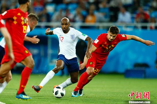 比利时以小组第一晋级上半区,他们将在1/8决赛中对阵日本。英格兰以小组第二进入下半区,淘汰赛对阵哥伦比亚。中新社记者 富田 摄