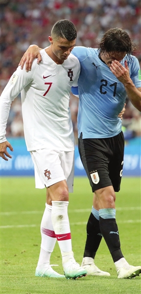阿根廷队在喀山下榻酒店后面的一堵墙上,画着C·罗的大幅肖像,这是去年联合会杯比赛的时候,当地组委会为C·罗送上的礼物。不过随着阿根廷队的到来,C·罗的画像上被加了一句口号,“我能打入4球,你能击败这个纪录吗,莱奥?”任何时候,两名最伟大的球星都会被单独拎出来比较,很难说梅西和C·罗谁更出色。不过在阿根廷队被淘汰后的几个小时,C·罗领衔的葡萄牙队也要离开俄罗斯了。不过人们更加关心的是,已经33岁的C·罗,是否应该就此告别国家队呢?