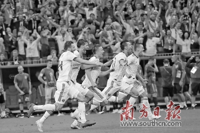 俄罗斯队欢庆胜利。 南方日报特派记者 李细华 摄