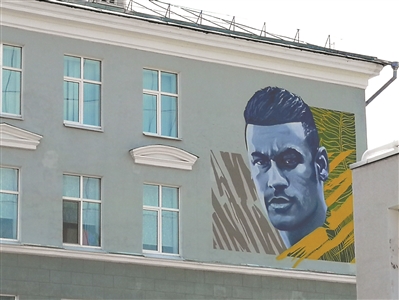 内马尔头像大涂鸦在巴西队抵达前半小时完工。(张喆 白志标 摄)