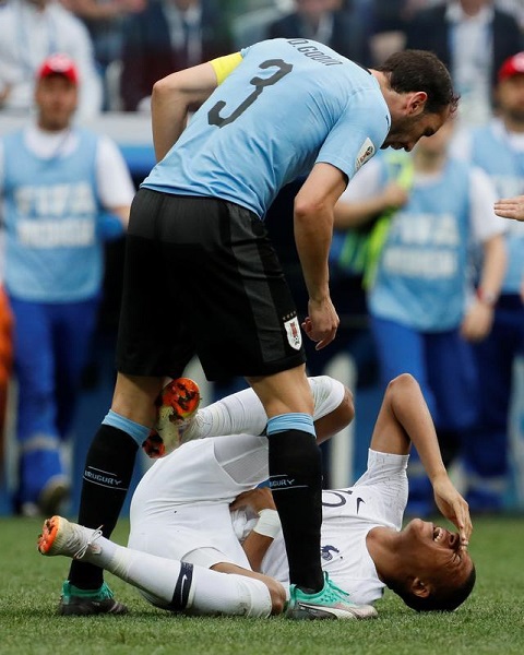 但姆巴佩没伤,他是装的。实际上,罗德里格斯的手臂只是习惯性轻轻扫了一下姆巴佩,如果这也能让他痛苦倒地,姆巴佩一定是玻璃做的,难怪乌拉圭队会如此愤慨。