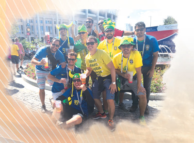 莫斯科卢日尼基体育场馆前的巴西球迷。 本报记者 屈 佩摄