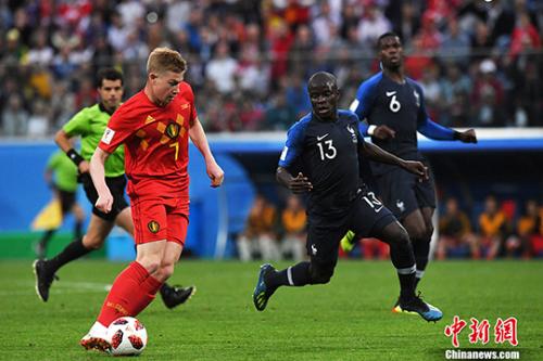 中新网7月11日电 北京时间7月11日凌晨,2018俄罗斯世界杯第一场半决赛在圣彼得堡体育场打响,由“高卢雄鸡”法国迎战“欧洲红魔”比利时。这是一场身价高达18亿欧元的对决,被称为“提前上演的决赛”,最终法国人笑到了最后。凭借乌姆蒂蒂的进球,法国队1:0战胜比利时队,成为第一支晋级决赛的队伍。他们将与英格兰与克罗地亚的胜者争夺大力神杯。