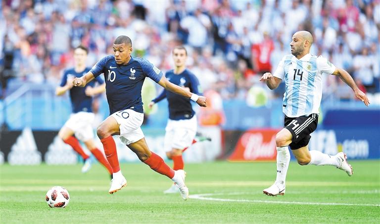 在法国队同阿根廷队的比赛中,速度奇快的姆巴佩让阿根廷队吃尽苦头 Osports供图