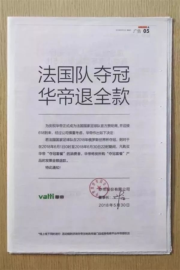 法国夺冠,网友们想到两件事,一件是开赛前的“华帝退全款”……而华帝官方称已经启动。