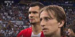 克罗地亚核心莫德里奇静静地站在场地中间,他忧郁的眼神让人心碎……
