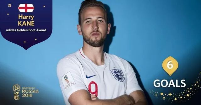 凯恩出战的6场比赛中打入6球,其中3粒点球。他也力压打入4球的C罗、切里舍夫、卢卡库、姆巴佩和格列兹曼获得本届世界杯的金靴奖。