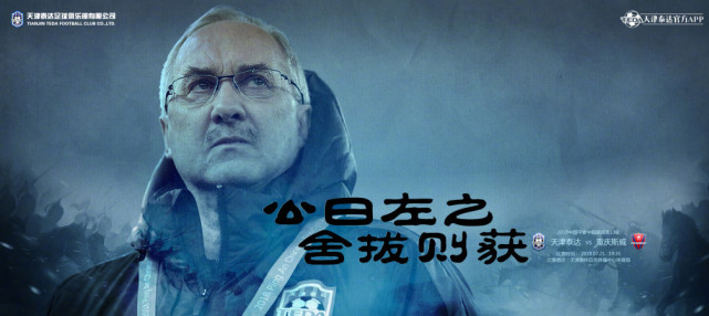 腾讯体育7月20日讯 中超第13轮即将开战,明天天津泰达将坐镇主场迎战重庆队。赛前泰达发布主题为公曰左之,舍拔则获的海报。海报以主帅施蒂利克目光坚毅的望向远方的照片为背景。