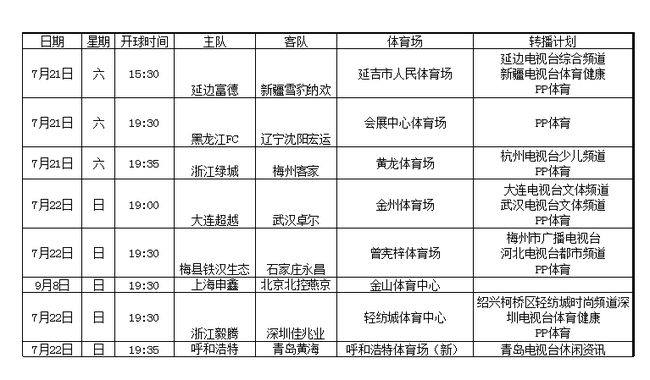 7月21-22日,2018赛季中甲联赛继续进行。本轮比赛直播安排如下: