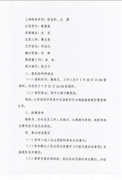 此外,昨天国家体育总局在官网公示了一份亚运会中国男足的20人名单,效力于海牙的张玉宁成为唯一一名在欧洲效力的球员,而上港则有前锋陈彬彬、门将陈威入选。球队将于7月31日在苏州集中,并同马来西亚队、伊朗队进行两场热身赛,随后出征亚运会。(新民晚报首席记者 关尹)