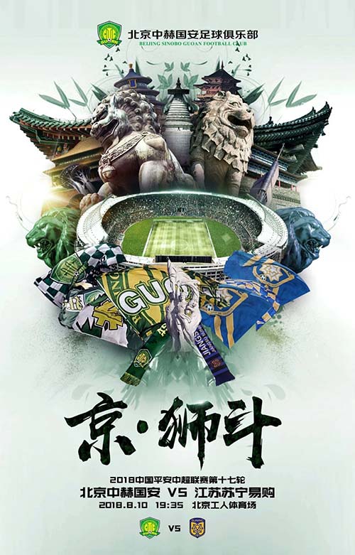 国安发战苏宁海报:京狮斗 全力住榜首位置