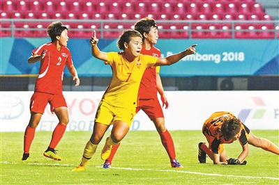 本报讯(记者 肖赧)在昨晚进行的雅加达亚运会女足B组最后一轮角逐中,中国女足凭借王霜、王珊珊的进球以2比0完胜朝鲜队,在结束对对手3连败尴尬纪录同时,也以小组第一名、进25球未失1球的骄人战绩跻身8强。她们四分之一决赛的对手是C组第三名泰国队,因此晋级半决赛的机会非常大。