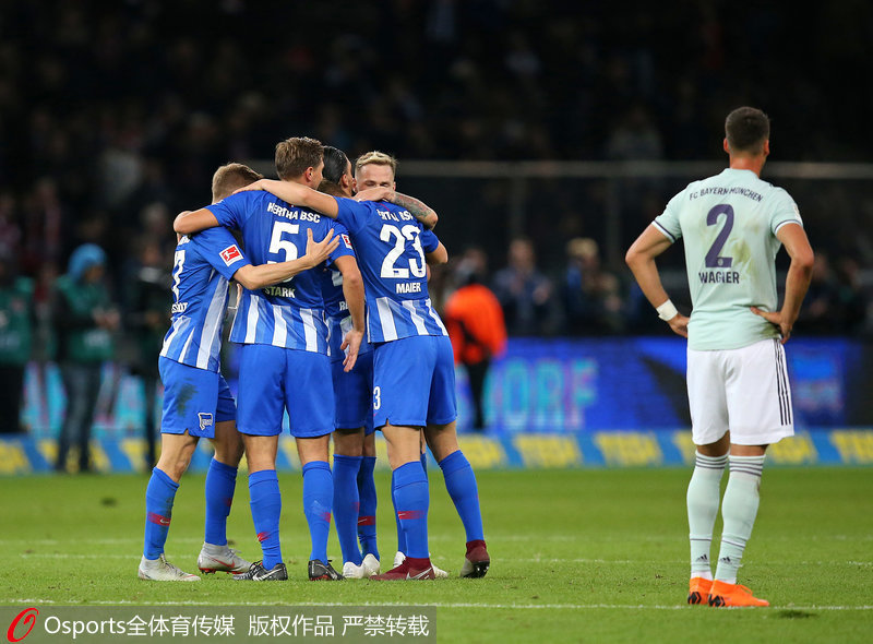 全场比赛结束,拜仁慕尼黑客场0-2负于柏林赫塔,遭遇本赛季首场失利。