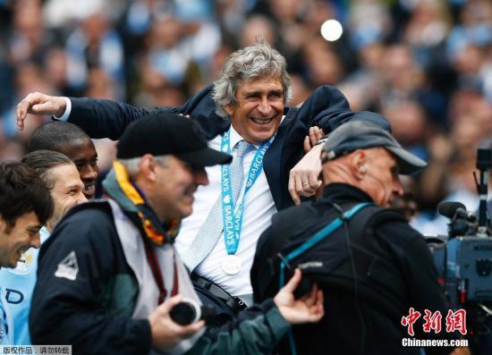资料图:西汉姆联现任主帅佩莱格里尼曾与纳斯里携手代表曼城赢下2014年英超冠军。