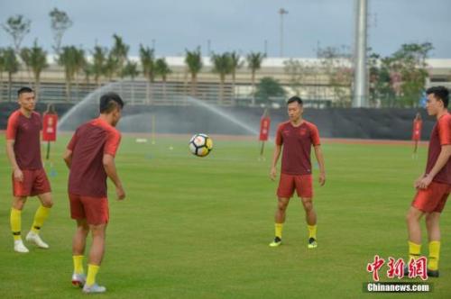 资料图:国足在训练中。中新社记者 骆云飞 摄