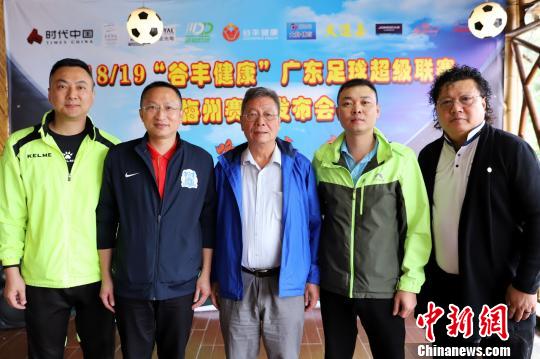 中新网梅州12月7日电 (记者 唐贵江)2018/19赛季“谷丰健康”广东足球超级联赛梅州赛区启动新闻发布会7日在梅州举行,中国足球协会副主席容志行,粤港澳大湾区足球冠军联赛组委会主任、广东省民间足球促进会执行会长王军等出席。