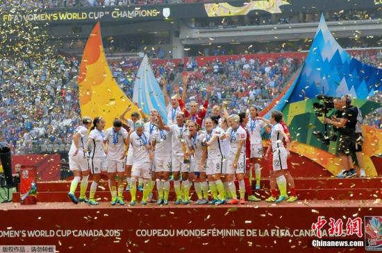 资料图:美国女足在2015年夺得女足世界杯冠军。