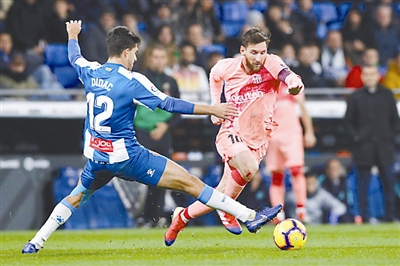 当日,在2018-2019赛季西甲联赛第15轮比赛中,巴塞罗那队客场以4比0战胜西班牙人队。 新华社/路透