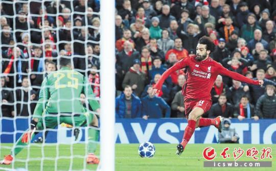 萨拉赫(右)破门得分,为利物浦赢得了出线机会。新华社发