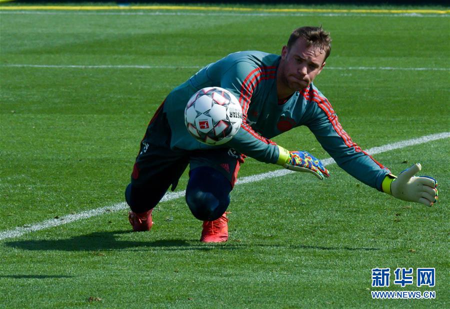 拜仁慕尼黑队守门员诺伊尔在训练中。新华社发