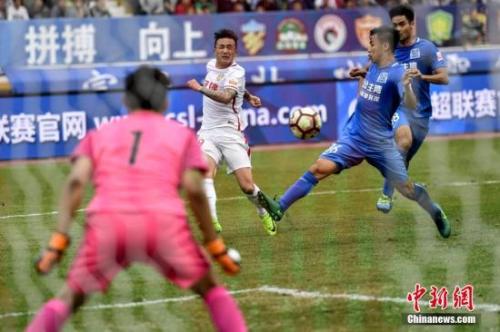 资料图:权健球员在比赛中。中新社记者 于海洋 摄