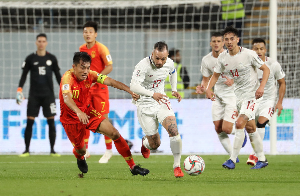 1月11日,在阿联酋阿布扎比举行的2019年亚洲杯足球赛C组小组赛中,中国队以3比0战胜菲律宾队,提前小组出线。