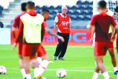 里皮率领国足备战小组赛第三轮。京报体育全媒体特派记者 刘平摄