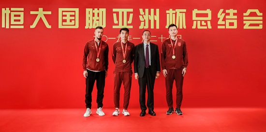 在总结会上,夏海钧向郑智、郜林、张琳芃等国脚转达了因公出差的恒大老板许家印的赞扬和慰问,并为三位国脚颁发了“恒大国脚国家队比赛拼搏奖”奖牌。冯潇霆则被调到预备队。