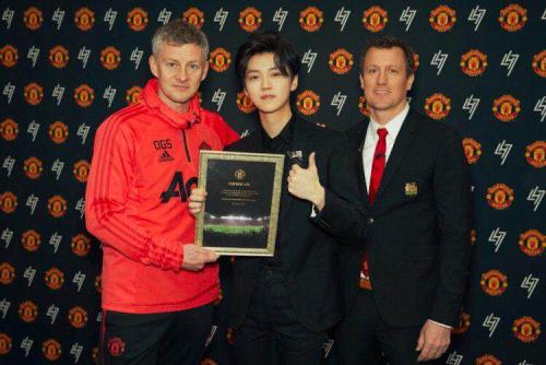 2019年新年伊始,鹿晗接受曼联足球俱乐部邀请,首次到访曼彻斯特。除了出席“曼联红魔使者”的授予仪式之外,鹿晗还受邀参观了曼联怡安训练基地,与曼联球员亲密互动。并且在1月19日与曼联传奇球星Bryan Robson、Gary Pallister以及曼联电视台主播Mark Sullivan一起见证了曼联主场战胜布莱顿的英超比赛。鹿晗在社交媒体上传自己为曼联进球呐喊的视频获得了超过60多万次的播放。