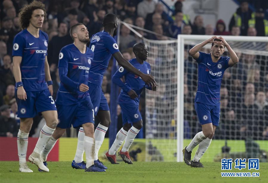 2月27日,切尔西队球员佩德罗(右一)在进球后庆祝。 当日,在2018-2019赛季英格兰足球超级联赛第28轮比赛中,切尔西队主场以2比0战胜托特纳姆热刺队。 新华社记者韩岩摄