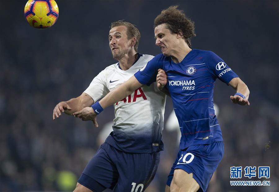 热刺队球员凯恩(左)在比赛中与切尔西队球员路易斯拼抢。新华社记者韩岩摄