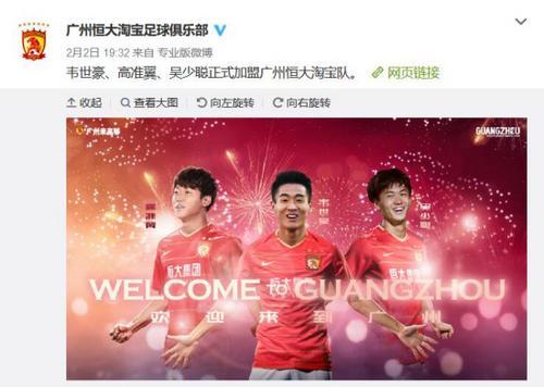 资料图:国脚成为转会市场香饽饽 图片来源广州恒大俱乐部微博